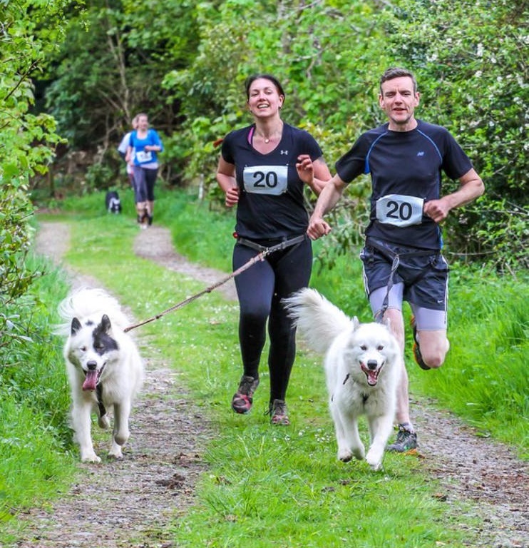 Canicross is the sport of cross country running with dogs. Originating in Europe as off-season training for the mushing (sledding) community, it has become popular as a stand-alone sport all over Europe, especially in the UK. Canicross is suitable for all ages, abilities and all breeds of dog. Canicross can be run with one or two dogs, always attached to the runner. The runner typically wears a waist belt, the dog a harness, and the two are joined by a bungee or elastic line that reduces shock to both human and dog when the dog pulls. Canicross can be used recreationally, as part of training, just for fun or you can take part in Canicross events.